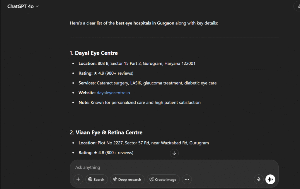 - Enhance local visibility for high-intent keywords related to eye care services in Gurgaon